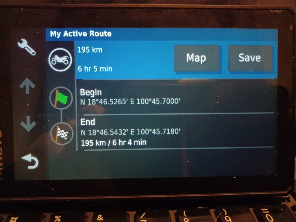 Noen ganger opplever jeg at ruten krasjer når jeg forsøker å starte navigeringen. Så langt har dette bare skjedd med ruter som brukes på kart som ikke er originale Garmin kart. Når GPS’n krasjer på denne måten forsvinner Sporene fra skjermen. Sporene ligger fortsatt på GPS’n men innstillingen om at de skal vises permanent er blitt skrudd av. Dette må altså skrus på igjen for at Sporene skal vises.